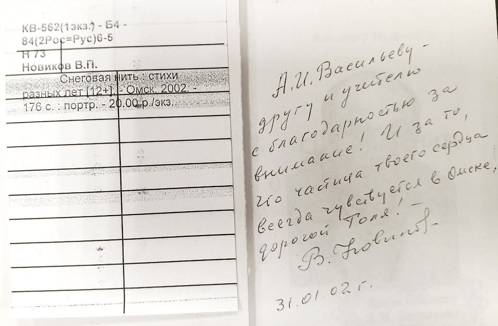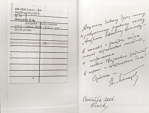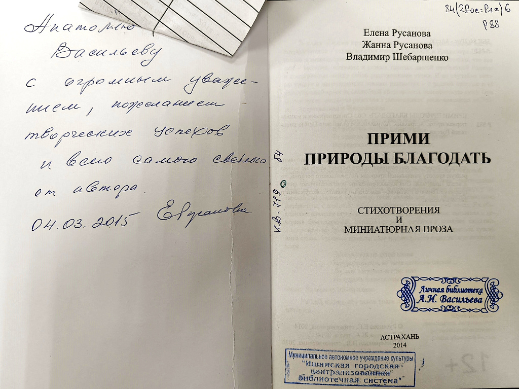 В нашем случае надписи на подаренных книгах из личной библиотеки Анатолия Ивановича Васильева позволяют нам составить его словесный портрет как писателя, друга, наставника и просто человека.
