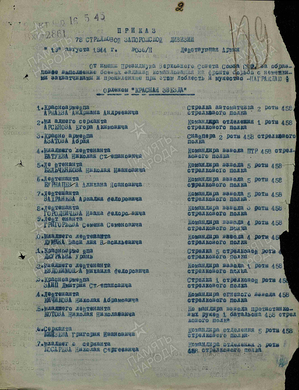 Место службы: 458 стрелковый полк 78 стрелковой дивизии, 866 отдельный батальон связи 180 стрелковой дивизии, Украинский фронт.