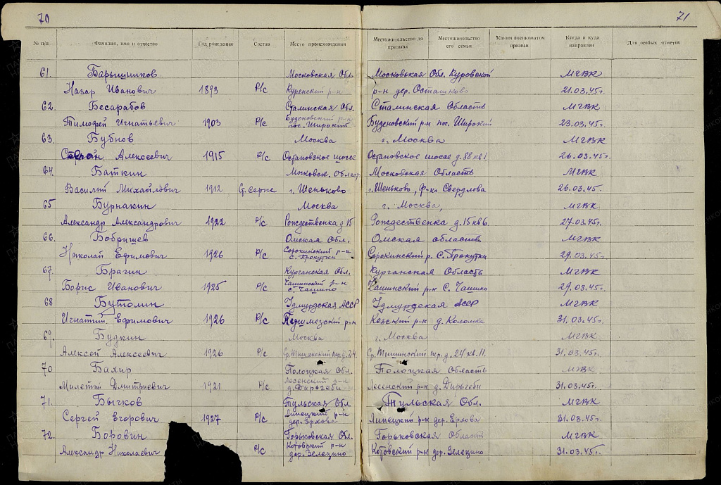 Место призыва: В июне 1944 г. Сорокинским РВК, Тюменской обл.