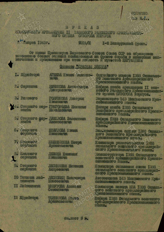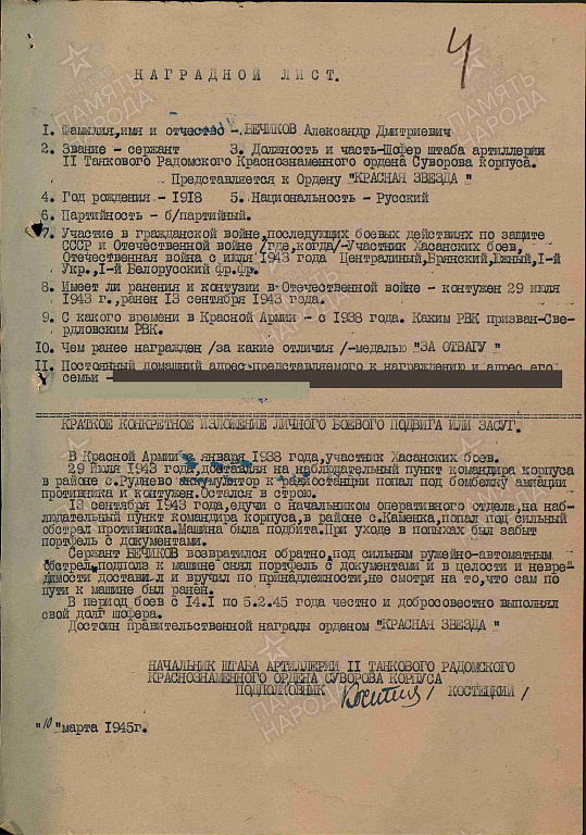 Награды: Медаль «За отвагу», «Орден Красной Звезды», «За боевые заслуги