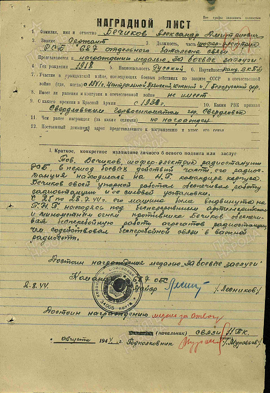 Место службы: штаб 11 танковый корпус 1 БелФ 687 отдельный батальон связи 11 танкового корпуса