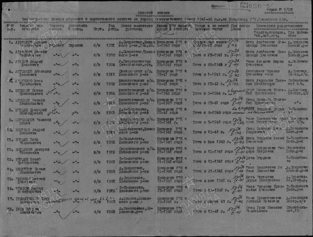 Извещение получил отец Бечикова Филиппа Евстафьевича, Евстафий Ермолаевич.