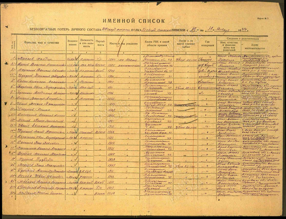 Дата и место призыва: __.__.1943, Ишимский РВК, Омская обл., Ишимский р-н