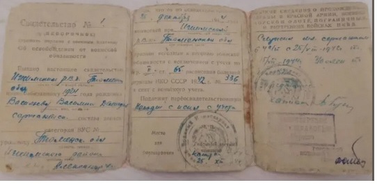 09. 11.1944г. Василий был выписан из госпиталя, где получил свидетельство о признании негодным к несению военной службы.