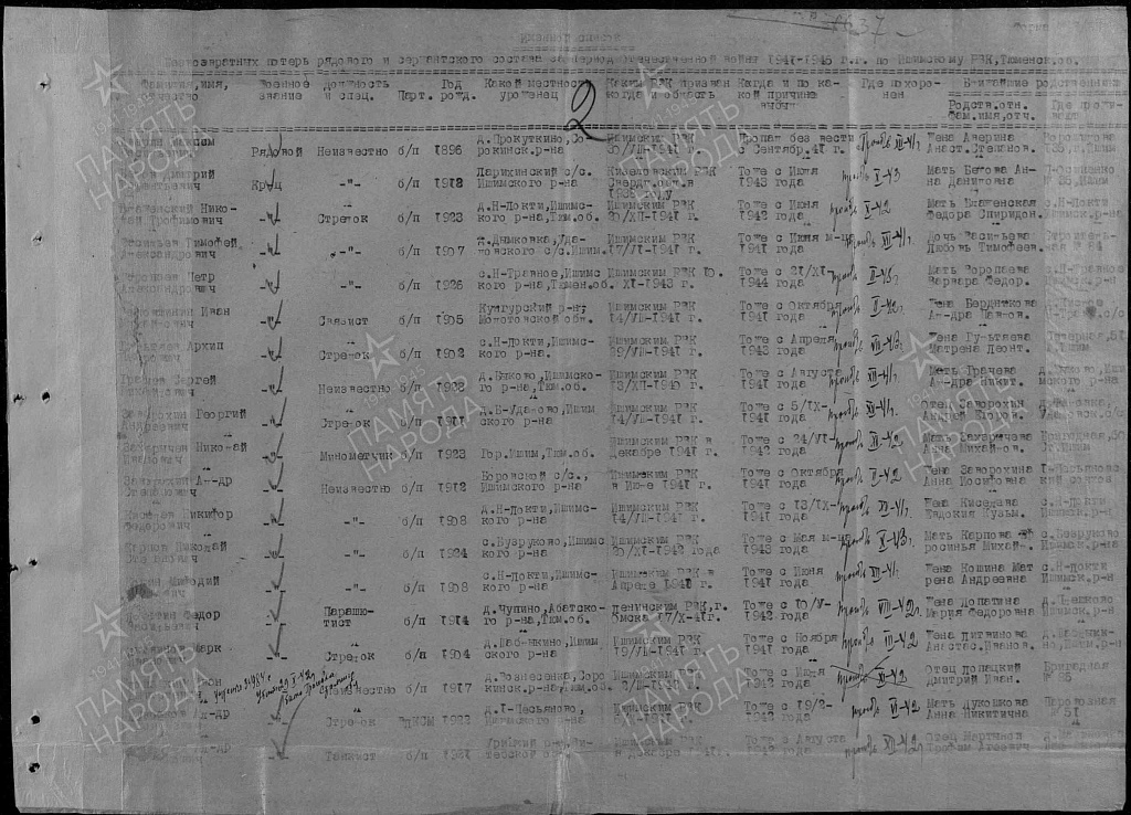Дата и место призыва: 17.06.1941 Ишимский РВК, Тюменская обл., Ишимский р-н.