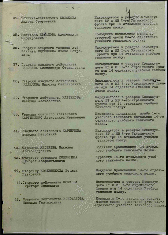 Место службы: 14 отдельный учебный танковый полк Воронежского фронта