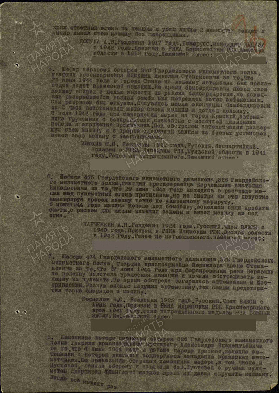 Место службы: 326 гвардейский минометный полк 3 БелФ