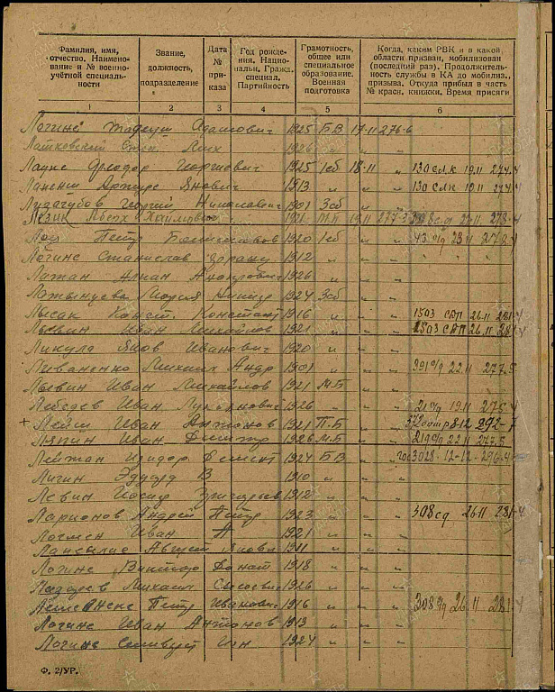 Дата и место призыва: _._.1943 г., д. Стрехнино р-н, Омская обл.
