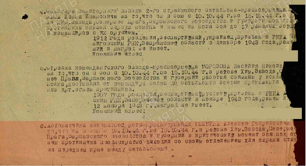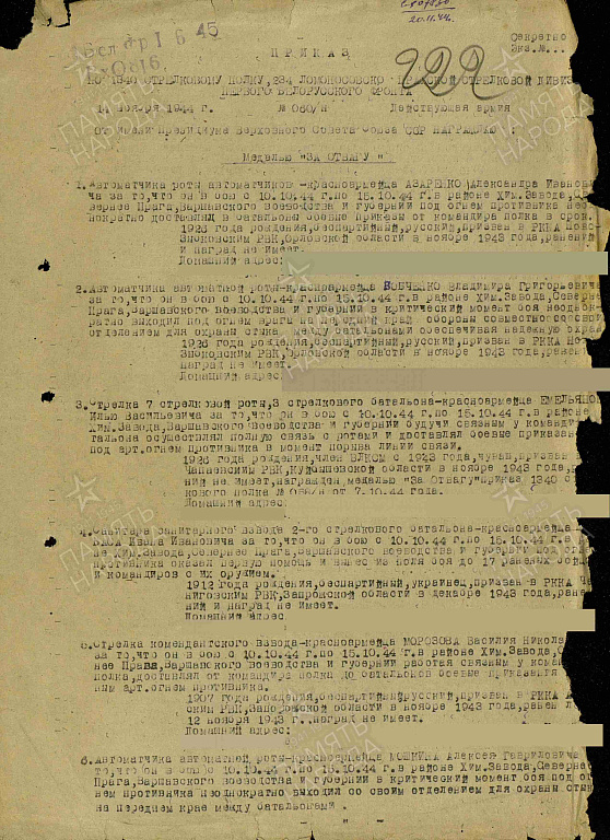 Воинская часть: 522 стрелковый полк 107 стрелковая дивизия 4 Украинский фронт