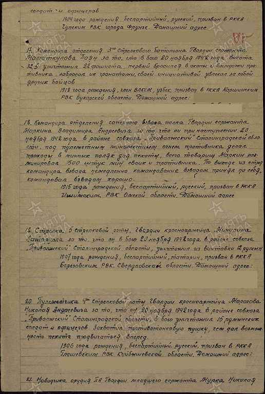 Воинское звание: гв. ст. сержант, сержант; рядовой