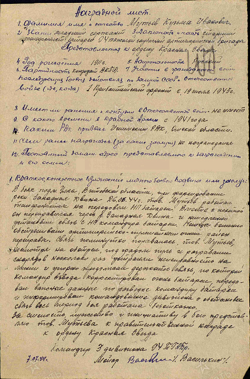 Дата и место призыва: _._.1941 г., Ишимский РВК, Омская обл.