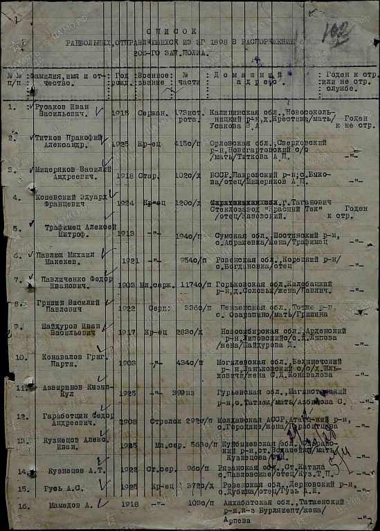 Дата и место призыва: 18.06.1942 Ишимский РВК Омская обл.
