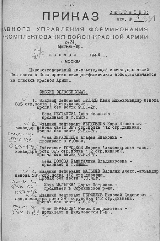 Восстановили: февраль 1943 г.