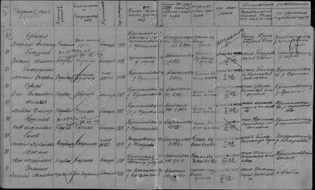 Место рождения: д. Ефимово, Тушнолобовский с/с, Абатский р–н, Омская обл.