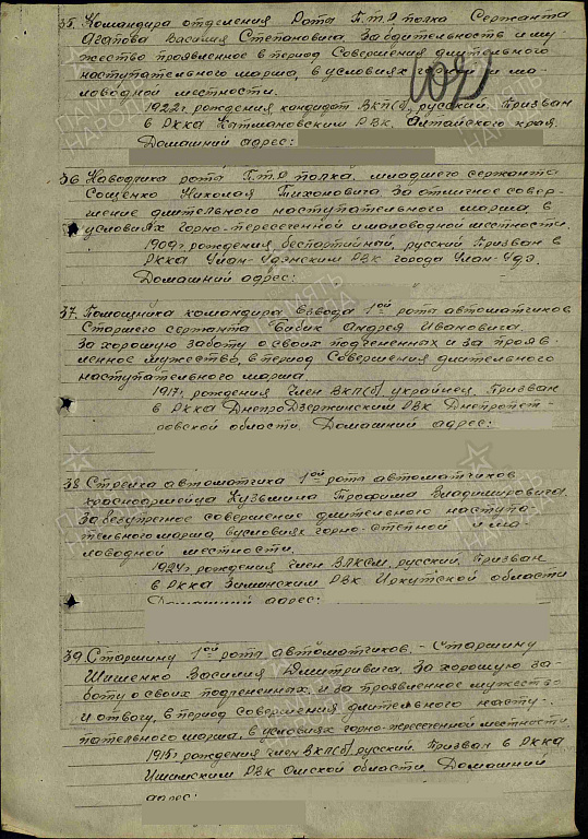Дата поступления на службу: __.__.1937 года Омская обл., Ишимский РВК